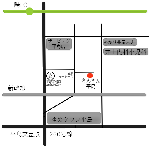 県道西大寺赤磐線から平島幼稚園の所を入り、岩藤モータースをさらに直進